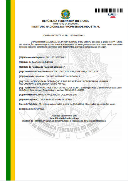 Πρότυπο:Patent Αριθμός:112015026306-2 Ημερομηνία Έκδοσης:2020-12-29 Που εκδίδονται από:INSTITUTO NACIONAL DA PROPRIEDADE INDUSTRIAL |