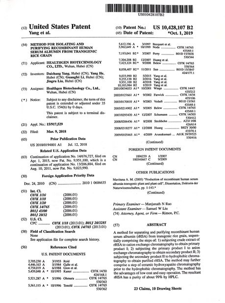 Πρότυπο:Patent Αριθμός:US 10,428,107 B2 Ημερομηνία Έκδοσης:2019-10-01 Που εκδίδονται από:United States Patent Office |